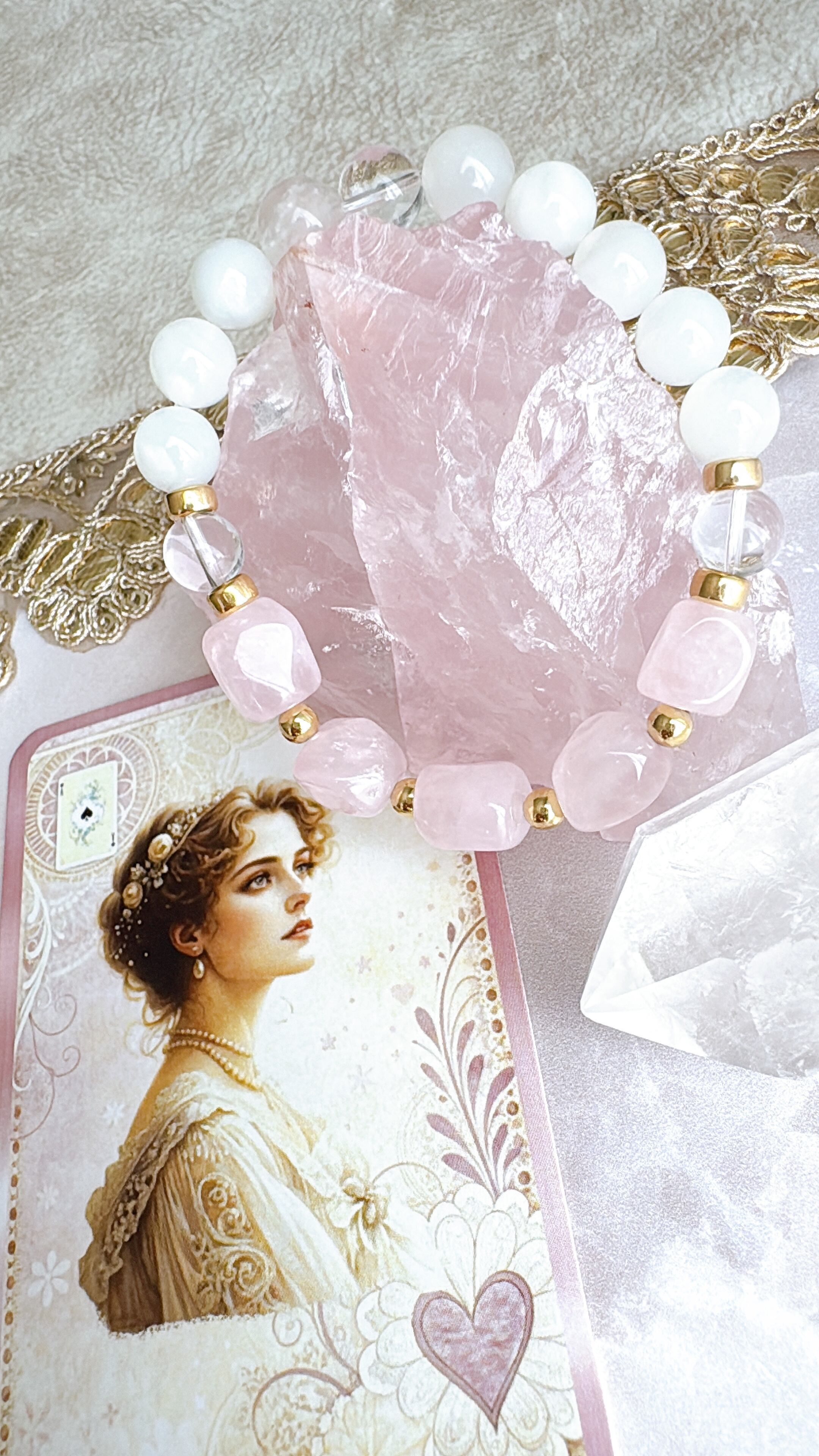 ローズクォーツとムーンストーンを贅沢に半分ずつ使い、