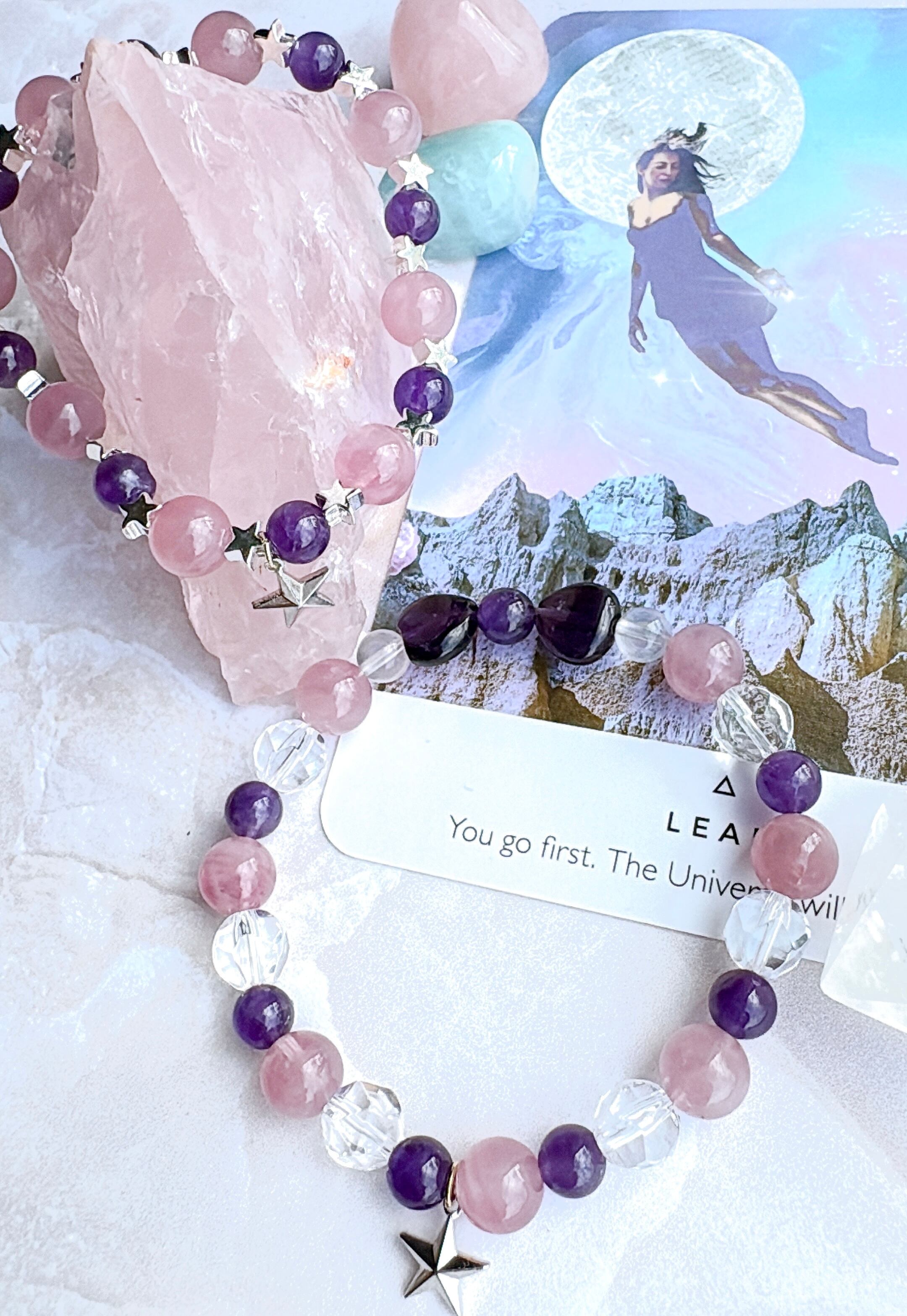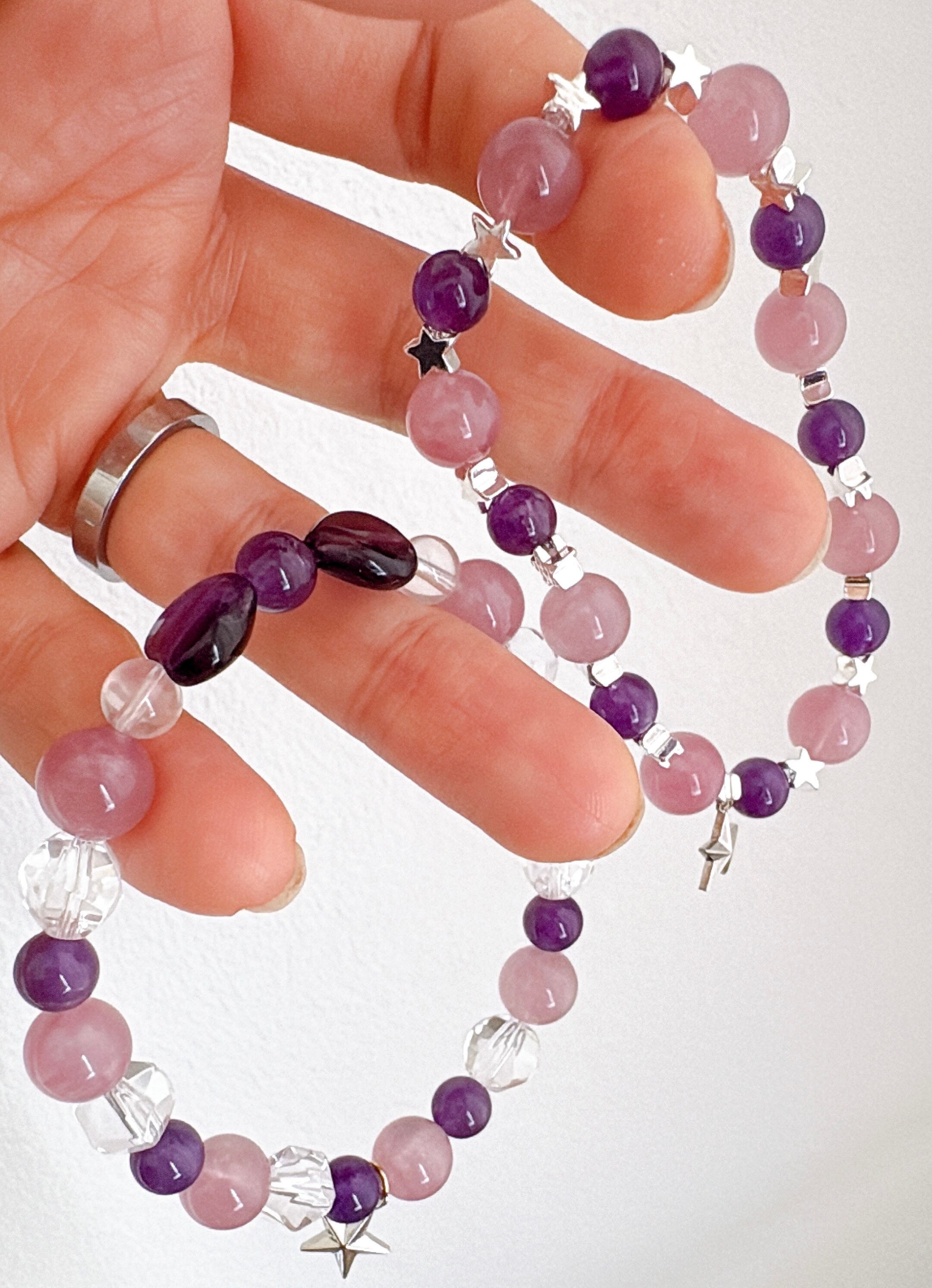 希少な愛の石・パープルスターローズクォーツと水瓶座の守護石のアメジストの神秘性に、キラキラ輝くスターカットクォーツを。