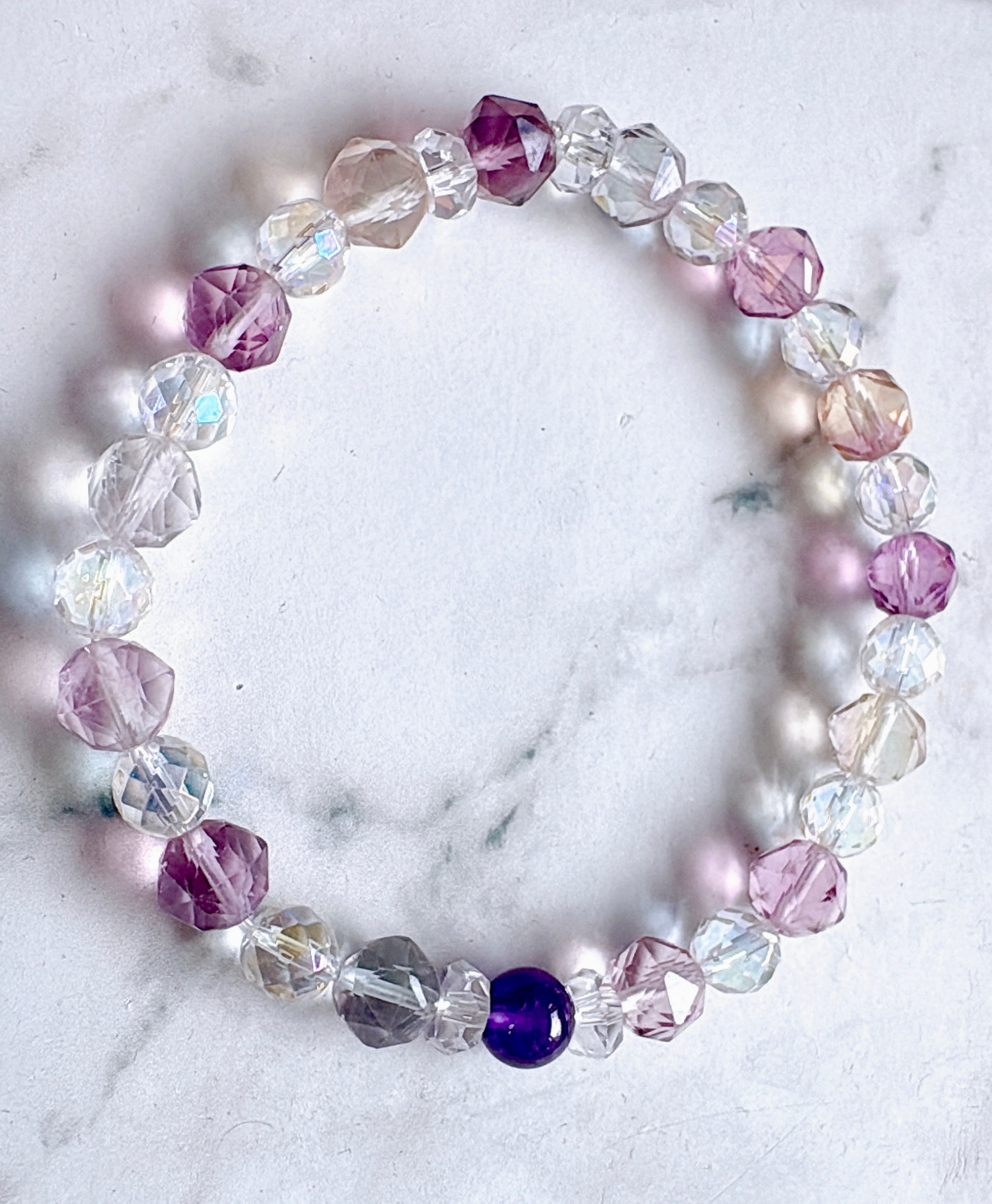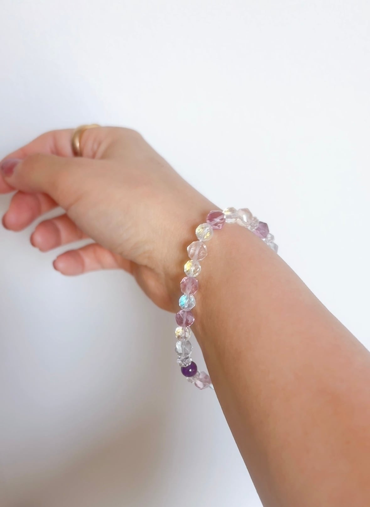 あなたの光を輝かせるフローライトとアメジストブレスレット「プリズムブレス」