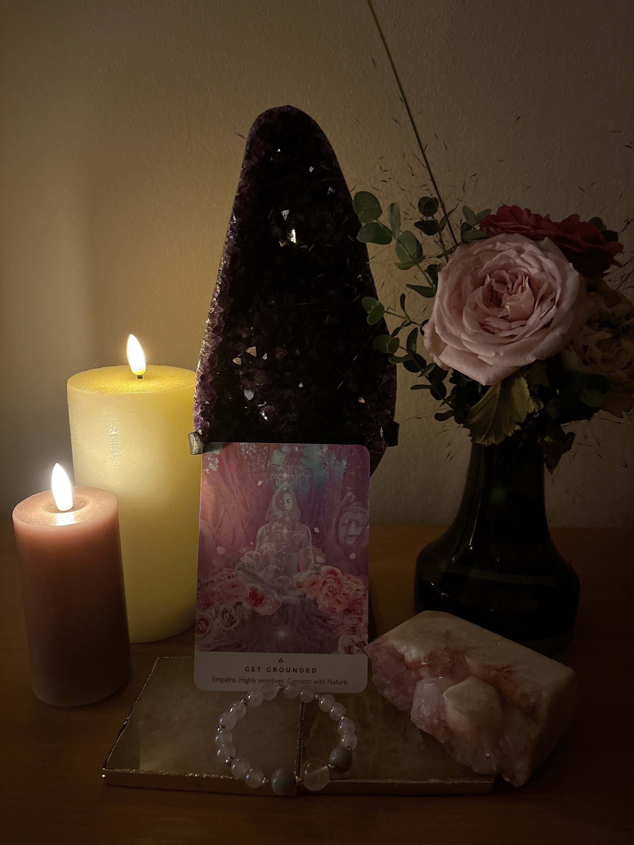 あなたに今必要なカードとパワーストーン(アメジストドーム、レムリアンシードクリスタル、ピングアメジスト、オリジナルパワーストーンブレスレット)の波動を使いながら